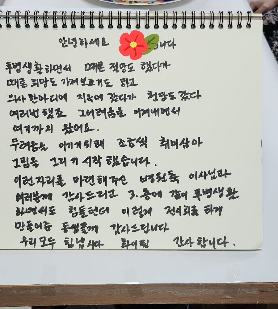같은 공간에서 숨쉬고 위로 하며 지키고 있는 우리 큰나무 식구들도 환자분과