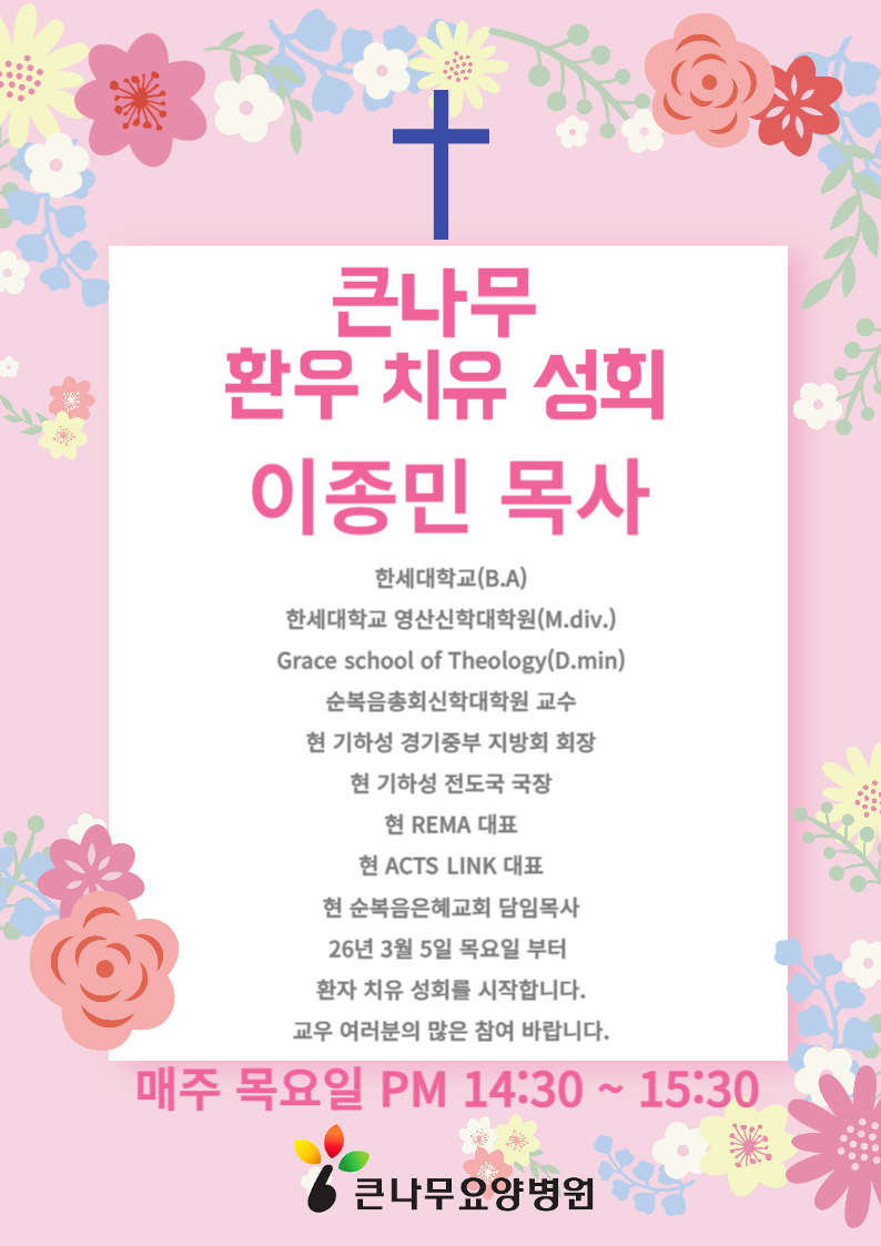 [큰나무요양병원] 매주 목요일 환우 치유 성회 안내